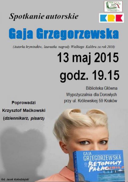 Gaja Grzegorzewska - ukończyła filmoznawstwo na Uniwersytecie Jagiellońskim. Miłośniczka kryminałów. Adeptka brazylijskiej sztuki walki – capoeiry. Felietonistka Portalu Kryminalnego. Twórczyni cyklu o prywatnej detektyw Julii Dobrowolskiej. Debiutowała w 2006 roku powieścią "Żniwiarz". Za następną powieść o przygodach krakowskiej detektyw "Noc z czwartku na niedzielę" była nominowana do Nagrody Wielkiego Kalibru. Za kolejną: "Topielica" otrzymała Nagrodę Wielkiego Kalibru 2010, dołączając do grona najlepszych i najbardziej uznanych polskich autorów kryminałów.