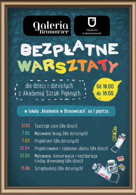 Wszystkie zajęcia w Galerii Bronowice są bezpłatne i nie wymagają wcześniejszej rezerwacji miejsc. Serdecznie zapraszamy!