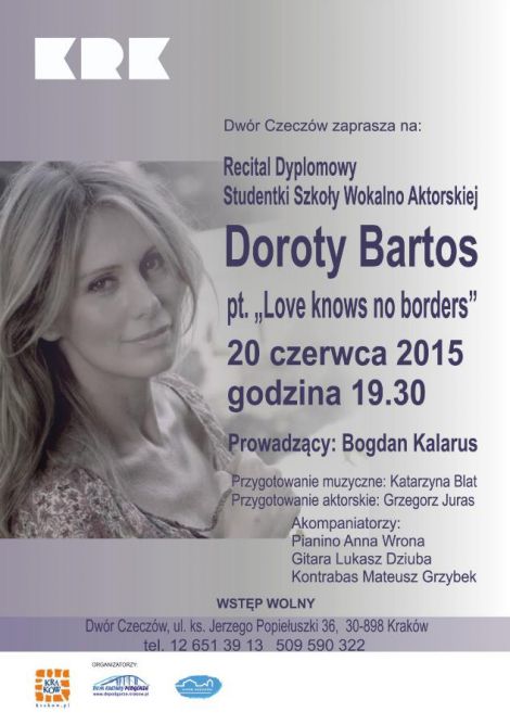 Recital dyplomowy studentki Szkoły Wokalno Aktorskiej, Doroty Bartos. Tytuł recitalu „Love knows no borders”.