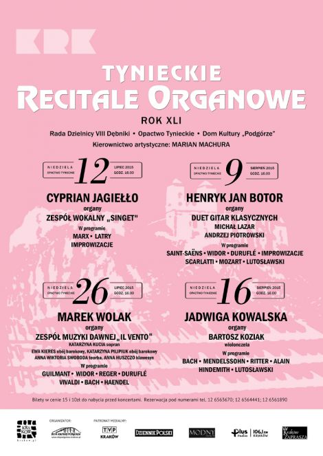 Zapraszamy na drugi koncert z cyklu XLI Tynieckie Recitale Organowe. Podczas koncertu wystąpią: MAREK WOLAK – organy oraz ZESPÓŁ MUZYKI DAWNEJ „IL VENTO” w składzie :KATARZYNA KUCIA – sopran, EWA KIERES – obój barokowy,