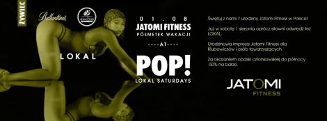 Pure Jatomi Fitness wraz z klubem LOKAL świętuje półmetek lata w rytmie muzyki pop. Jeśli marzysz o świetnej zabawie w towarzystwie ludzi kochających sport, nie może Cie zabraknąć. Mamy dla Was mnóstwo gadżetów, nagród i wiele niespodzianek, które możecie zdobyć poprzez uczestnictwo w sobotniej imprezie.