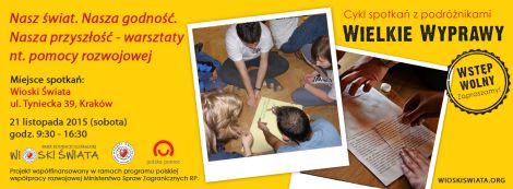 Zapraszamy 21 listopada 2015 roku, o godz. 9:30 do Wiosek Świata przy ul. Tynieckiej 39 na warsztaty „Nasz świat, nasza godność, nasza przyszłość” – w czasie których uczestnicy dowiedzą się czym jest pomoc rozwojowa i w jaki sposób Polska ją realizuje. W jaki sposób można ją osobiście realizować oraz dlaczego pomoc rozwojowa jest właściwie potrzebna.