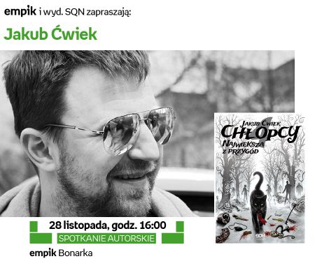 Ulubiony pisarz młodego pokolenia wraca z nową częścią przygód Cienia i Piotrusia. „Chłopcy 4. Największa z przygód” (wyd. SQN) to brawurowy finał bestsellerowej serii. Z okazji premiery Jakub Ćwiek spotka się z czytelnikami w Empiku w krakowskiej Bonarce już w sobotę, 28 listopada.