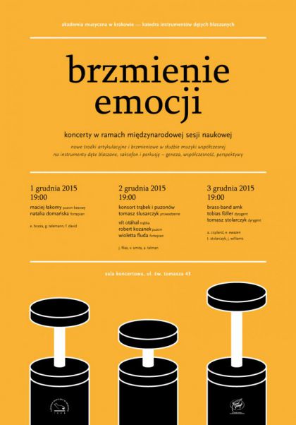 W ramach sesji naukowej "Nowe środki artykulacyjne i brzmieniowe w służbie muzyki współczesnej na instrumenty dęte blaszane, saksofon i perkusję. – geneza, współczesność, perspektywy", Katedra Instrumentów Dętych Blaszanych zaprasza na cykl koncertów do Sali Koncertowej przy ul. św. Tomasza 43