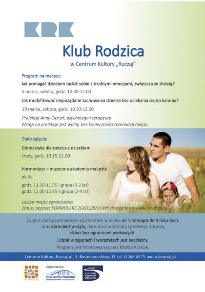 Więcej informacji oraz kolejne terminy spotkań w Klubie Rodzica w CK "Ruczaj" na stronie www.ckruczaj.pl.