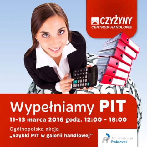 W dniach od 11 do 13 marca 2016 w godz. 12:00 - 18:00 w Centrum Handlowym Czyżyny odbędzie się Ogólnopolska akcja „Szybki PIT w galerii handlowej”.