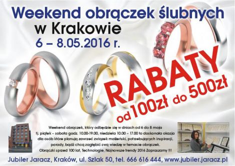 Serdecznie zapraszamy na "WEEKEND OBRĄCZEK ŚLUBNYCH" w Krakowie, który odbędzie się w dniach 6-8 maja 2016 r.
