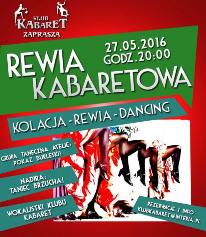 Grupa artystów klubu Kabaret ma zaszczyt zaprosić na spotkanie ze starą dobrą piosenką. Usłyszycie państwo takie przeboje jak: "Ja się boję sama spać", "Sexapil" czy "Cabaret" Lizy Minnelli.