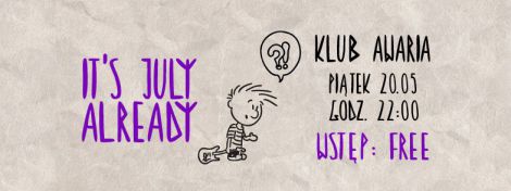 Z ogromną przyjemnością zapraszamy Was na kolejny koncert It's July Already. Tym razem widzimy się w Klubie Awaria w najbliższy piątek o godz. 22. Do zobaczenia ;).