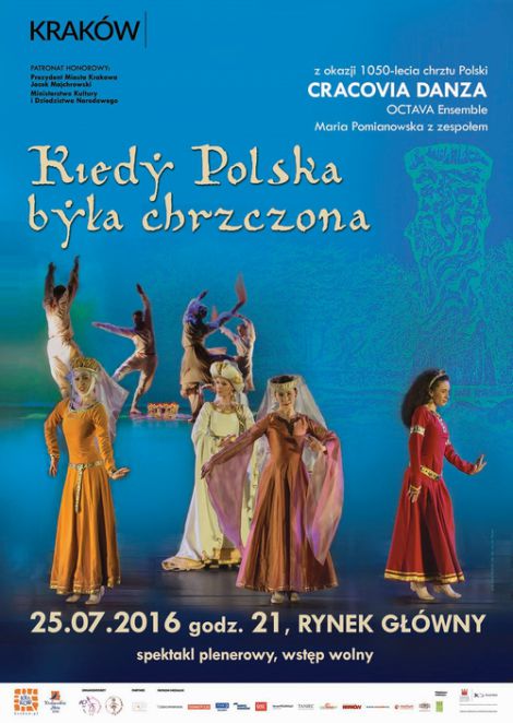 Balet Dworski Cracovia Danza zaprasza na premierę spektaklu Kiedy Polska była chrzczona, ilustrujący tańcem i pantomimą pojawienie się form ceremoniału i etykiety kultury zachodniej na słowiańskim dworze Mieszka I. Przedstawienie zostanie pokazane w ramach Nocy Cracovia Sacra, 25 lipca, o godz. 21, na scenie plenerowej wzniesionej na krakowskim rynku. Tancerzom Cracovia Danza będą towarzyszyli muzycy: Maria Pomianowska wraz z zespołem instrumentalnym oraz oktet wokalny Octava Ensemble.