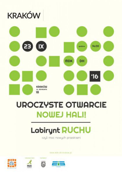 I właśnie teraz, we wrześniu 2016 roku, świętujemy sukces. Otwarcia sali dokonamy podczas sportowo-rekreacyjnej imprezy „Labirynt Ruchu” 23.09.2016 r. Poza przysłowiowym „przecięciem wstęgi” impreza będzie przede wszystkim dobrą zabawą dla uczestników