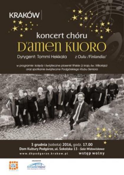 Koncert fińskich kolęd i piosenek świątecznych w wykonaniu Chóru D'amen Kuoro z miasta Oulu. Chór wystąpi pod dyrekcją Tommi Hakkala.