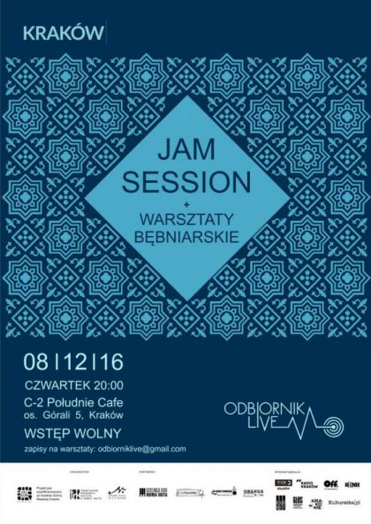 Kolejne otwarte jam session w Nowej Hucie w ramach cyklu Odbiornik Live. Przed jammowaniem odbędą się warsztaty gry na bębnach, które poprowadzi Krystian Truchalski. Ilość miejsc na „bębnienie” jest ograniczona ze względu na ilość bębnów jaką dysponujemy, dlatego chętnych prosimy o wcześniejsze zapisy: