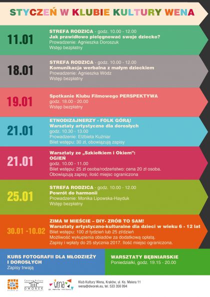 Zapraszamy na styczniowe zajęcia w Klubie Kultury Wena