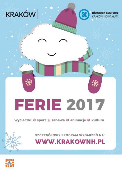 Zima wcale nie jest taka zła! Szczególnie ta, która wypełniona jest różnorodnymi atrakcjami i wydarzeniami, niepozwalającymi na to, by nudzić się w domu. A takich wydarzeń na pewno nie zabraknie w Klubach Ośrodka Kultury Kraków-Nowa Huta podczas dwóch zimowych tygodni Ferii. W tym czasie pracownicy Klubów zaplanowali różnorodne warsztaty, wyjścia, gry i zabawy, do udziału w których zapraszają wszystkie dzieci.