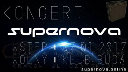 Już w najbliższą sobotę o godzinie 20:00 odbędzie się pierwszy w tym roku koncert lokalnego zespołu Supernova. Wszyscy wierni fani, a także zapewne spora grupa poszukiwaczy nowych brzmień ucieszy się z wieści, że wyjątkowo wstęp na koncert będzie darmowy. Zapraszamy serdecznie!