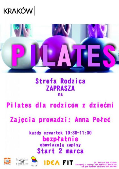 Zapraszamy na bezpłatne zajęcia pilatesu dla dorosłych (dzieci wraz z rodzicami mile widziane).