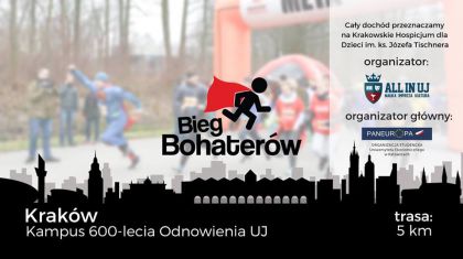 Bieg Bohaterów to projekt tworzony z organizacją Paneuropa z Katowic, która rok temu zorganizowała pierwszą edycję biegu. W tym roku to wydarzenie odbędzie się również w Krakowie. Pobiec można po zapłaceniu 20 zł a cały dochód z biegu zostanie przeznaczony na Hospicjum dla Dzieci im. ks. Józefa Tischnera, który od 2004 roku tworzy domową atmosferę dla cierpiących maluchów.