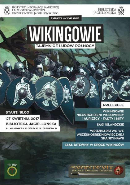 Tajemnice Ludzi Północy czekają na Ciebie już w czwartek 27 kwietnia. Zapraszamy na godzinę 18 do Auli Biblioteki Jagiellońskiej (al. Mickiewicza 22, wejście od ul. Oleandry 3) . Wstęp wolny.