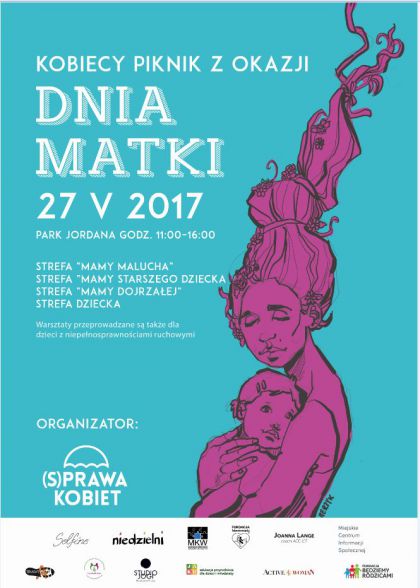 Dzień Matki to czas na miłe spotkanie i na rozmowę o sprawach kobiet. To także dobra okazja do edukacji. Dlatego w trakcie pikniku odbędą się zajęcia warsztatowe oraz porady dla kobiet w każdym wieku. Prowadzić je będą członkinie Stowarzyszenia (S)Prawa Kobiet oraz organizacji i instytucji, działających na rzecz aktywizacji i integracji kobiet. W ramach pikniku przewidziane są również zajęcia dla dzieci, tak by mamy mogły cieszyć się „chwilą czasu dla siebie”. Na warsztaty zapraszamy także dzieci z niepełnosprawnością. Chcemy wesprzeć działania przeciw wykluczeniom, uczyć najmłodszych, jak zachowywać się w kontakcie z ludźmi z niepełnosprawnością.