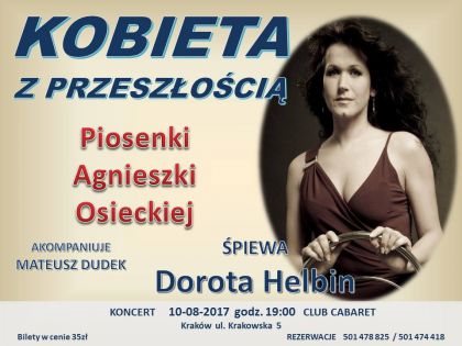 Recital Piosenek Agnieszki Osieckiej w wykonaniu Doroty Helbin akompaniuje Mateusz Dudek.