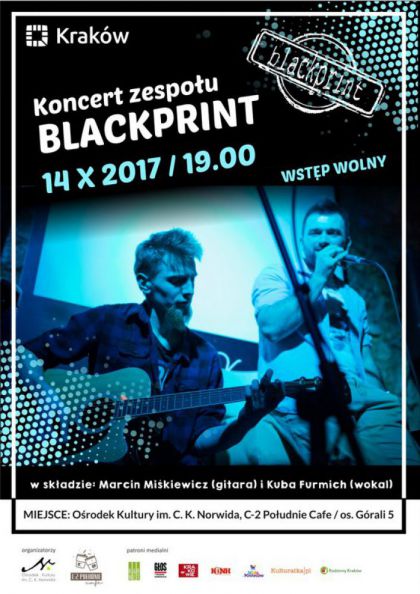 Zapraszamy na koncert duetu BLACKPRINT w składzie: Marcin Miśkiewicz (gitara) i Kuba Furmich (wokal).