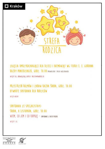 W każdą środę o godz. 10:00 zapraszamy rodziców wraz dziećmi do Strefy Rodzica w Klubie Kultury Paleta - filii CK Dworek Białoprądnicki.