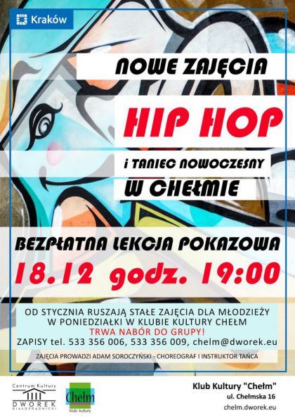 Rok się kończy, ale Klub Kultury Chełm startuje z nowymi pełnymi wrażeń zajęciami z tanecznym mixem rożnych technik: hip-hop, taniec nowoczesny, freestyle.