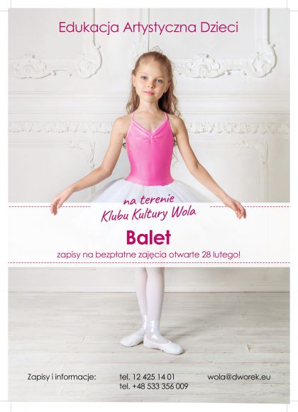 Klub Kultury Wola wraz z Edukacją Artystyczną Dzieci zaprasza na jednorazowe bezpłatne zajęcia baletowe, dzięki którym dzieci przekonają się, jaką cudowną rozrywką jest taniec klasyczny!