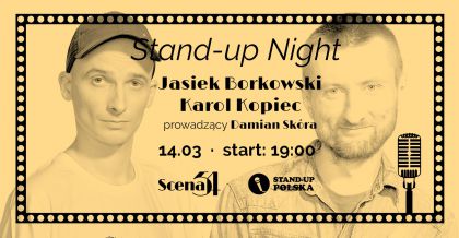 Zapraszamy na czwartą odsłonę wydarzenia organizowanego wraz ze Stand-up Polska. Tym razem #naScenie wystąpi Jasiek Borkowski oraz Karol Kopiec.