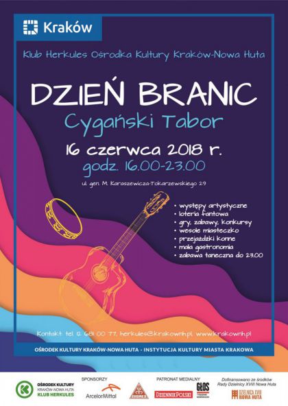 Klub Herkules Ośrodka Kultury Kraków-Nowa Huta (ul. Gen. M. Karaszewicza-Tokarzewskiego 29) zaprasza 16 czerwca o godz. 16.00 na na rodzinną imprezę plenerową Dzień Branic – Cygański Tabor. W programie imprezy znajdą się: występy artystyczne dzieci ze Szkoły Podstawowej nr 74, występ dziecięcej grupy baletowej z Klubu Herkules, piosenki cygańskie zaprezentuje zespół Nutki. Wydarzeniu towarzyszyć będą tematyczne konkursy i zabawy: przejażdżki konne, dorożką, pokaz zręcznościowy w wykonaniu Krakowskiego Szwadronu Ułanów, a także loteria fantowa, wesołe miasteczko. O godz.19.00 rozpocznie się zabawa taneczna z zespołem Pro-Fill do godz. 24.00.