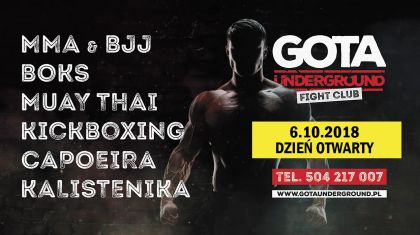 GOTA Underground to fightclub o niepowtarzalnym klimacie. Trenujemy różne sztuki walki oraz kalistenikę, oferujemy też atrakcje weekendowe jak sparingi, rozciągania czy warsztaty tematyczne.
