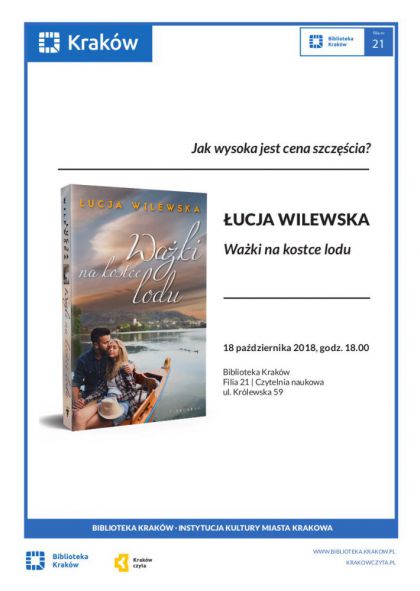 Serdecznie zapraszamy na spotkanie autorskie z Łucją Wilewską – autorką powieści obyczajowej „Ważki na kostce lodu”, a także dwutomowego cyklu z gatunku romansu paranormalnego Saga Czasu Przemiany.