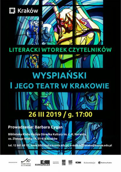 Spotkanie poświęcone Stanisławowi Wyspiańskiemu - re-interpretatorowi romantycznej tradycji, twórcy nowego modelu dramatu i teatru. Autor odcisnął ogromne piętno na krakowskiej i polskiej scenie teatralnej. Jego wizja teatru (m.in. dramatu, scenografii, gry aktorskiej) stała się punktem odniesienia dla późniejszych pokoleń wybitnych artystów scen polskich. Prowadzi Barbara Cygan. Wstęp wolny.