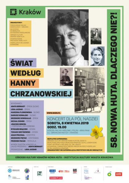 Pierwszy w 2019 r. koncert z cyklu Nowa Huta. Dlaczego Nie?!, tradycyjnie dedykowany Polom Nadziei, odbędzie się 6 kwietnia 2019 o godz. 19.00 w Kościele Arka Pana (ul. Obrońców Krzyża 1).