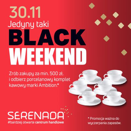 Specjalna akcja promocyjna Serenady odbywa się w ramach Black Weekend. Przez całe dwa dni – 29 i 30 listopada, klienci Centrum oprócz skorzystania z wyjątkowej możliwości otrzymania prezentu, mogą również przebierać w rabatach przygotowanych specjalnie dla nich!