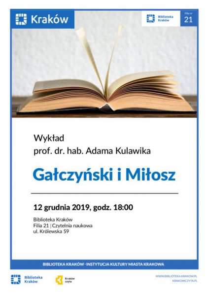 Wykład prof. dr. hab. Adama Kulawika prezentujący nowe spojrzenie na twórczość Konstantego Ildefonsa Gałczyńskiego i Czesława Miłosza.