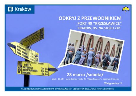 Fort 49 „Krzesławice” zaprasza na zwiedzanie dawnej części Twierdzy Kraków oraz do obejrzenia miejsc na co dzień niedostępnych dla gości – koszar, schronów i podziemnych korytarzy. Po Forcie 49 „Krzesławice” oprowadzi Dyrektor MDK – Franciszek Dziadoń.