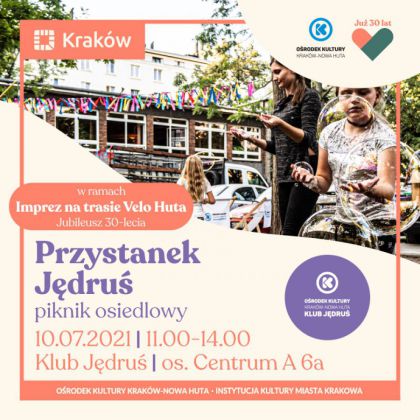 Klub Jędruś Ośrodka Kultury Kraków-Nowa Huta w ramach świętowania jubileuszu 30-lecia Ośrodka Kultury Kraków-Nowa Huta zaprasza na swoje podwórko! Po upalnej rowerowej rozgrzewce uczestnicy i uczestniczki jubileuszu będą mogli oddać się urokom letniej zabawy i odwiedzić legendarne miasto pod wodą. Na jeden dzień podwórko wokół Klubu Jędruś zamieni się ruiny zatopionego miasta, w którym odbędzie się wodna wersja gry w paintball. Na potrzeby gry i z szacunku do wody – źródła życia na naszej planecie Klub Jędruś będzie zbierać deszczówkę, która posłuży do zabawy. Spragnionym przygód uczestnikom i uczestniczkom trasy rowerowej zapewniona zostanie lemoniada, gry i zabawy na wolnym powietrzu oraz strefa relaksu.