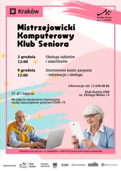 Mistrzejowicki Komputerowy Klub Seniora zaprasza na spotkania w Klubie Kuźnia OKN, os. Złotego Wieku 14 w Krakowie.