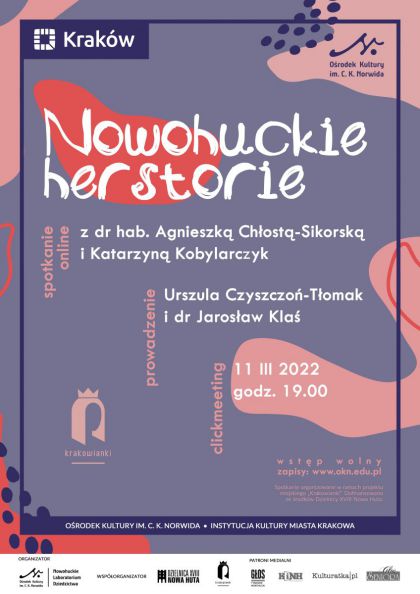 Wstęp wolny. Obowiązują zapisy na: https://okn.clickmeeting.com/miesiac-krakowianek-nowohuckie-herstorie-/register. Limit miejsc w pokoju webinarowym: 50 os.
