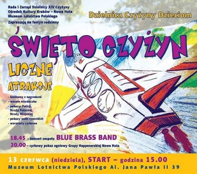 Już 13 czerwca (niedziela) na terenie Muzeum Lotnictwa Polskiego (al. Jana Pawła II 39) odbędzie się kolejna edycja Święta Czyżyn! Do udziału w festynie rodzinnym tradycyjnie zapraszają: Rada i Zarząd Dzielnicy XIV Czyżyny, Klub 303 Ośrodka Kultury Kraków-Nowa Huta oraz Muzeum Lotnictwa Polskiego. Zaczynamy o godzinie 15.00.