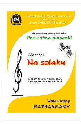 Na występ Grupy Okazjonalnej Bez Bisów zaprasza Klub Jędruś. Koncert zainauguruje cyklu pod nazwą POD – RÓŻNE PIOSENKI. Tematem pierwszego wieczoru będą wędrówki, podróże, jednym słowem – znajdziemy się na muzycznym szlaku.