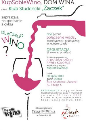 Rezerwacje drogą mailową (klub@bratniak.krakow.pl, w tytule maila wpisz WINO) do dnia 23 lipca 2010.