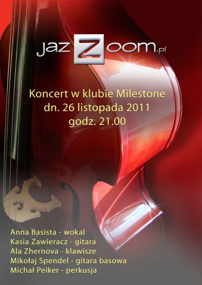 Zapraszamy na andrzejkowy wieczór z JazZoom. Specjalnie dla Was zespół zagra to co kachają najbardziej: muzykę pełną swingu, smooth jazz, funk oraz ognistą sambę i nastrojową bossa novę. Usłyszycie zarówno dobrze znane standardy jazzowe jak i własne kompozycje śpiewane w języku polskim. Nie zabraknie też przebojów muzyki rozrywkowej w nowych, jazzowych aranżacjach.