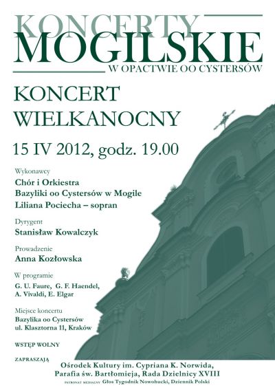 Z cyklu Koncerty Mogilskie zapraszamy na Koncert Wielkanocny w wykonaniu Chóru Bazyliki oo. Cystersów.