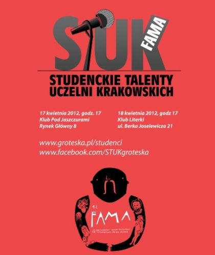 Teatr Groteska oraz Zrzeszenie Studentów Polskich zapraszają na półfinały Studenckich Talentów Uczelni Krakowskich STUK FAMA 2012, podczas których zaprezentują się najbardziej utalentowani studenci z całej Małopolski.