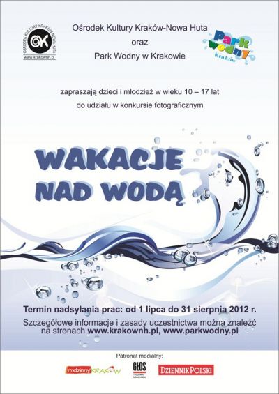 Wakacje to czas, na który czekamy cały rok. Wielu z nas jako cel swoich letnich podróży czy wypoczynku wybiera miejsca usytuowane nad wodą. Zarówno nad morzem, jeziorem, rzeką jak i na basenach można spędzić wyjątkowe chwile. Do udokumentowania właśnie takich chwil zachęcają: Ośrodek Kultury Kraków-Nowa Huta oraz Park Wodny w Krakowie, które pod hasłem Wakacje nad wodą ogłosiły konkurs fotograficzny.