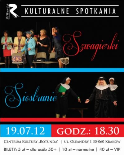 W ramach cyklu Kulturalne Spotkania w Rotundzie serdecznie zapraszamy na wyjątkową gratkę 2 w 1! Dwa spektakle teatralne podczas jednego wieczoru: "Szwagierki" i Siostrunie" wprowadzą Państwa w doskonały humor!
