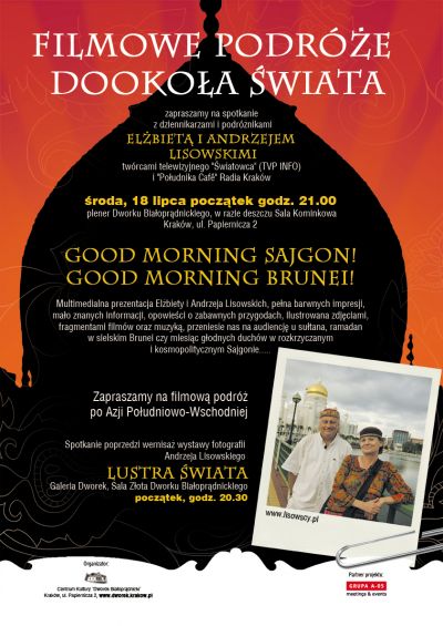 Zapraszamy na Filmowe podróże dookoła świata z udziałem podróżników Elżbiety i Andrzeja Lisowskich, twórców telewizyjnego cyklu “Światowiec” i “Południka Café” Radia Kraków.